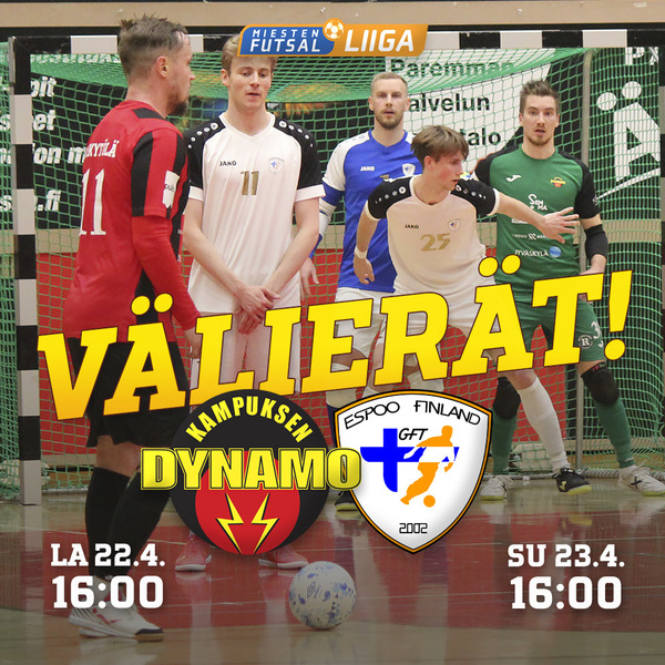 Miesten Futsal-Liigan välierät käynnistyivät Jyväskylässä KaDyn komealla 5–1-kotivoitolla GFT:stä. Toinen välieräottelu vihelletään käyntiin huomenna sunnuntaina klo 16 Jyväskylän Monnarilla.